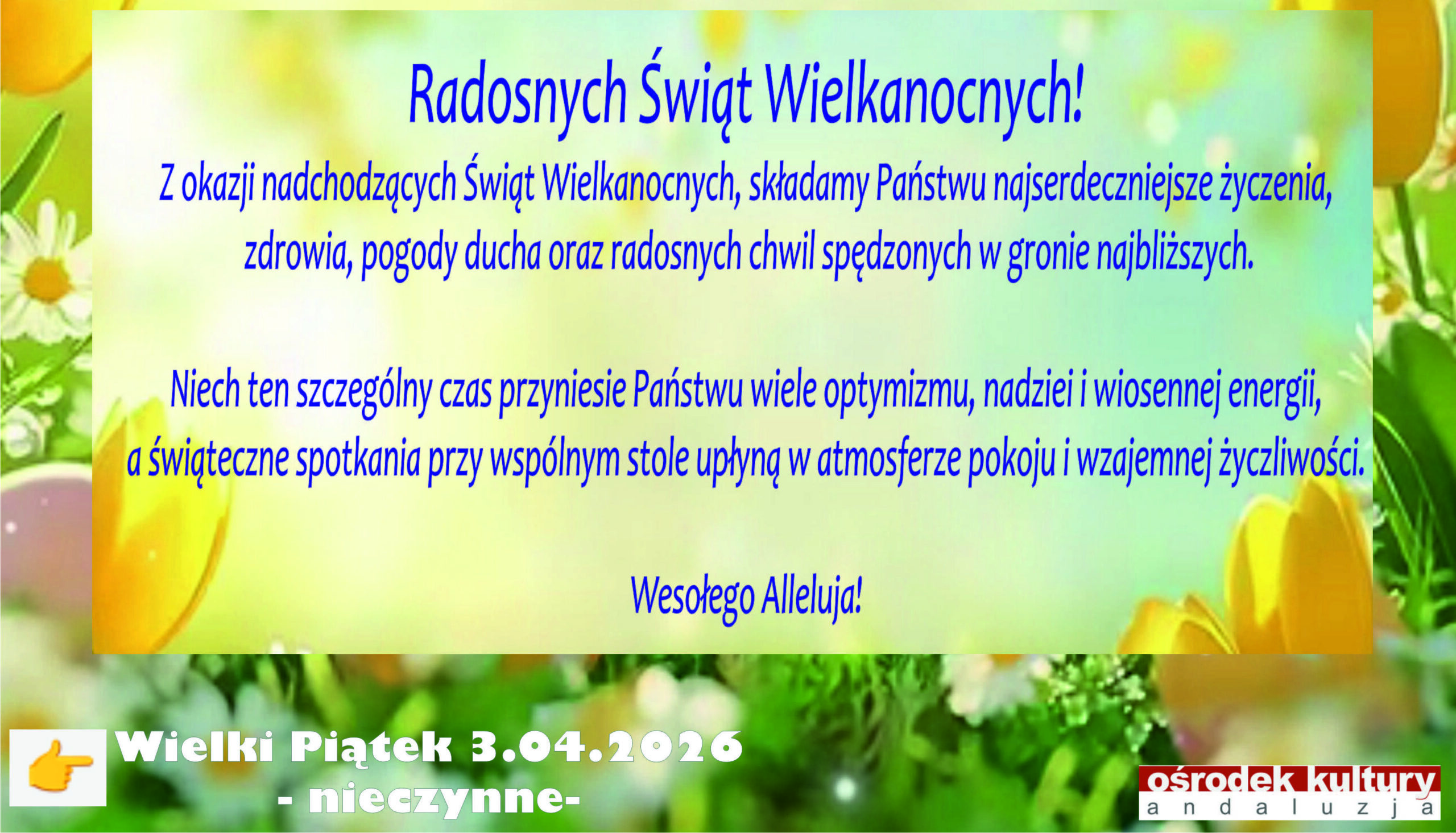 🧶✨RĘKODZIEŁO – Warsztaty Kreatywne w Ośrodku Kultury Andaluzja! ✨🧶 Zapraszamy dzieci i młodzież na wyjątkowe, twórcze spotkania z rękodziełem! 🎨💛 📅 Każdy czwartek ⏰ 15:00 – 17:00 📍 Ośrodek Kultury…